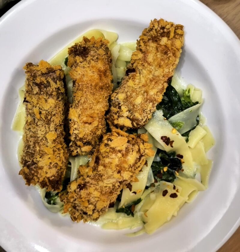 Pankómorzsában sült harcsafilé fokhagymás spenótos metélttel „Megállék a kanyargó Tiszánál…” A folyó partján lemenő Nap fénye, s a Tisza lassú csorgása ihlette receptem, mely egyaránt ideális választás a szürke hétköznapokra, vagy a közelgő ünnepek alkalmából. Rövid idő alatt, akár mindössze 35-40 perc alatt elkészíthető a teljes menü (panírozás mennyiségétől függően), és egy hétvégi családi ebéd …
