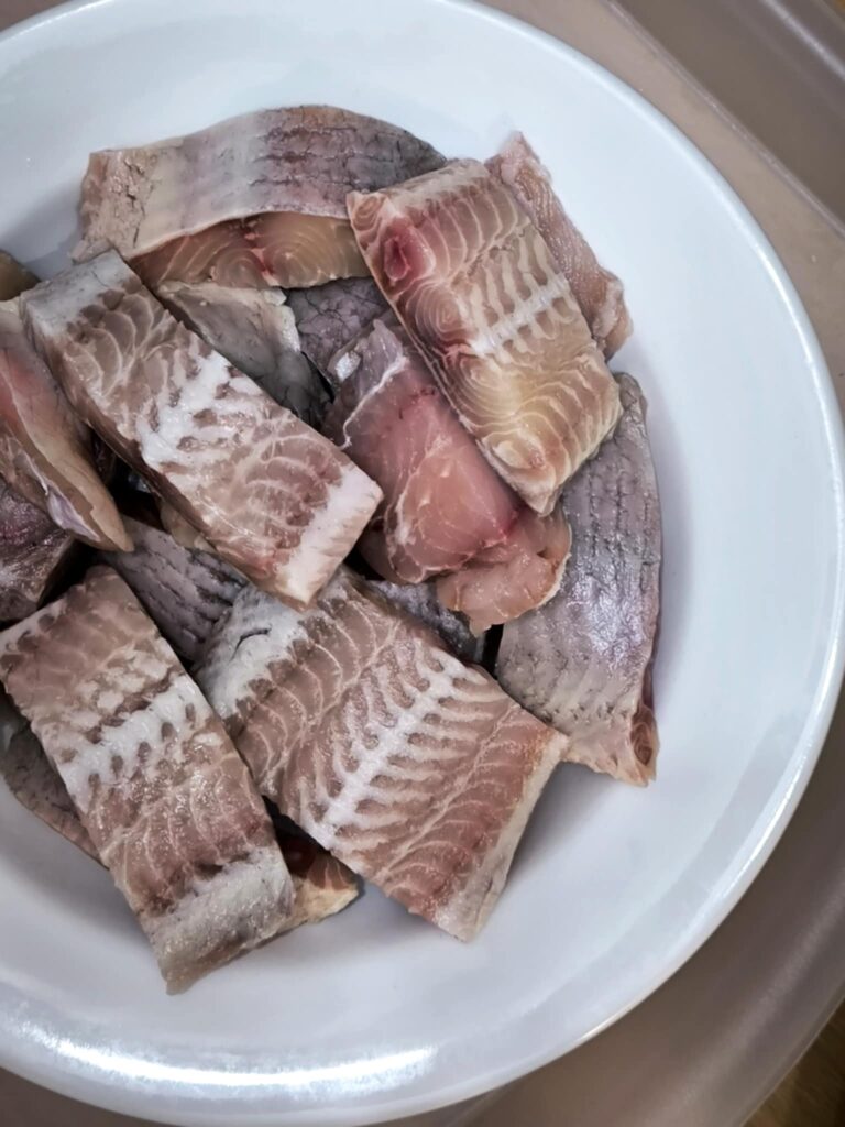 A halat öblítsd le, papírtörlő segítségével óvatosan itasd le róla a vizet, majd vágd tetszőleges szeletekre. Minimálisan szórd meg sóval – óvatosan, mert túl sok só esetén széteshet a hal!