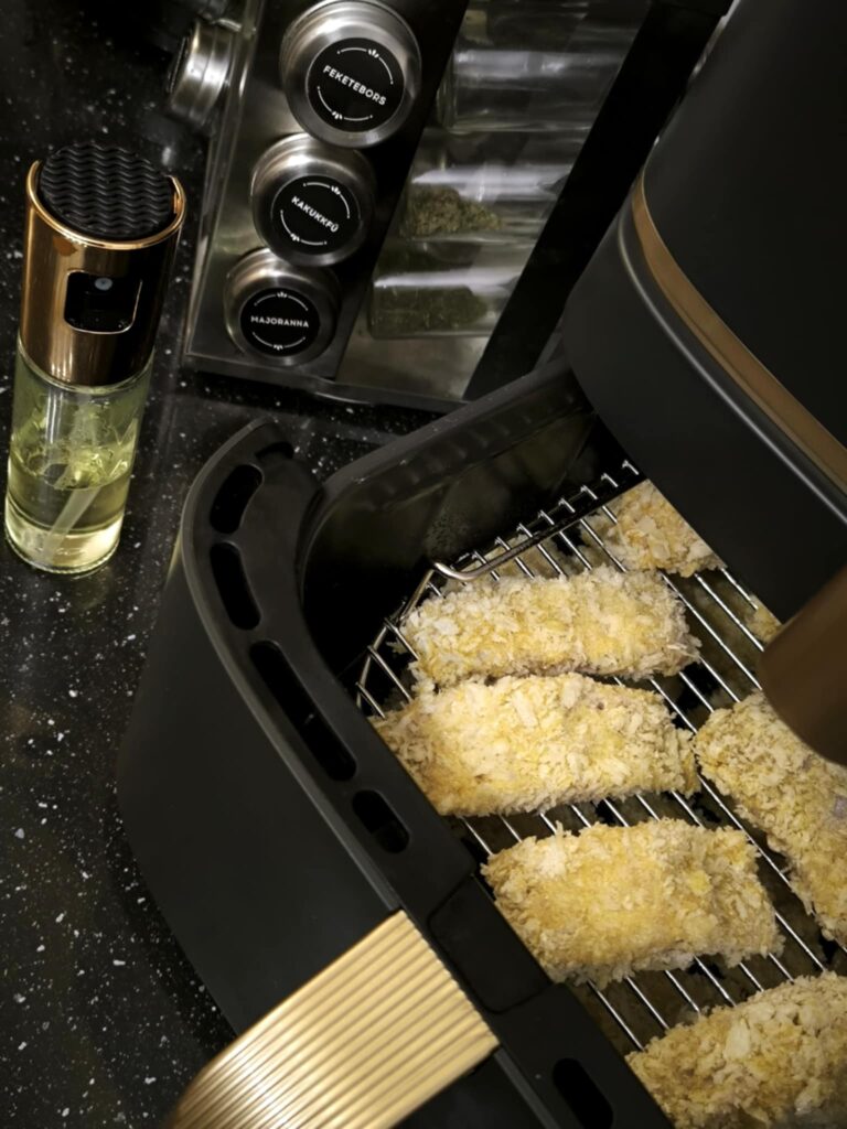 Sütéshez választhatod bő olajban, sütőben, esetleg airfryerben készítve is – én az utóbbiban sütöttem ki 190 fokon 20 perc alatt, időközben egyszer átforgatva, kevés olajjal megspriccelve.