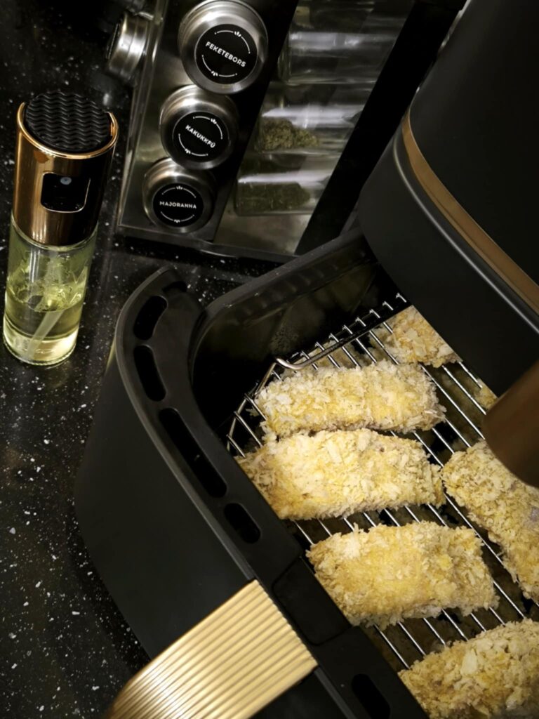 Sajnos a csomagnak eredetileg nem része egyéb kiegészítő, mint például egy fogócsipesz, érdemes előre készülni vele, akár rögtön két darab beszerzésével (mindkét kosárhoz). Az alábbi hasznos kellékeket ajánlom még hozzá: szilikon tálca, spatula, papírkosár, maghőmérő, olajspray.