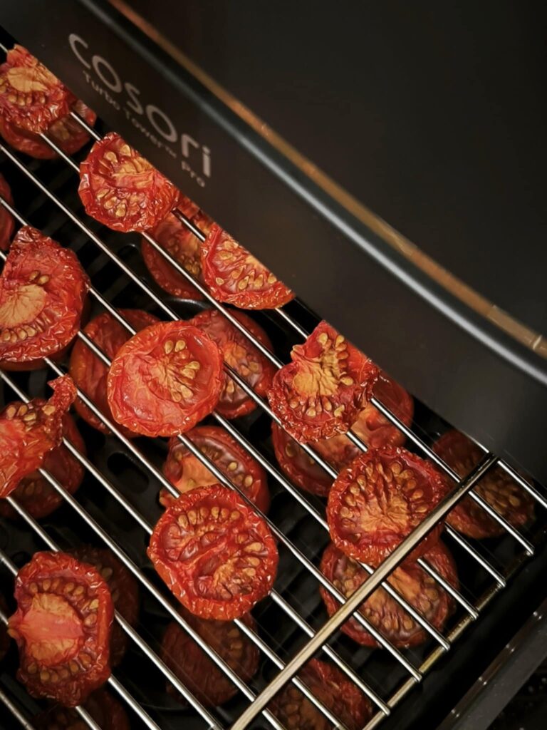 Rendkívül okos készülék, összesen 7 funkció közül választhatunk, miként szeretnénk elkészíteni ételünk: air fryer, pirítás, sütés, grill, melegítés, aszalás, kelesztés. A piacon nem igazán van vetélytársa, melyek ugyanennyi lehetőséget kínálnának – az időn túl rengeteg helyet is megspórol a konyhában. A kelt tésztának kifejezetten jót tesz, ha nincs mozgatva a kelesztés és sütés közt, én ezt focaccia (olasz lepénykenyér) készítése közben tapasztalhattam meg. Az aszalás időigényes folyamat, nálam elsőként aszalt paradicsom készült, melyhez 4 óra hossz volt szükséges. Jöhet banán, narancs, szilva, alma, készülhet a sok egészséges nasi és házi chips – ha az alapanyagok beszerzése házilag megoldható, mindez szinte ingyen, minimális költségvetéssel!