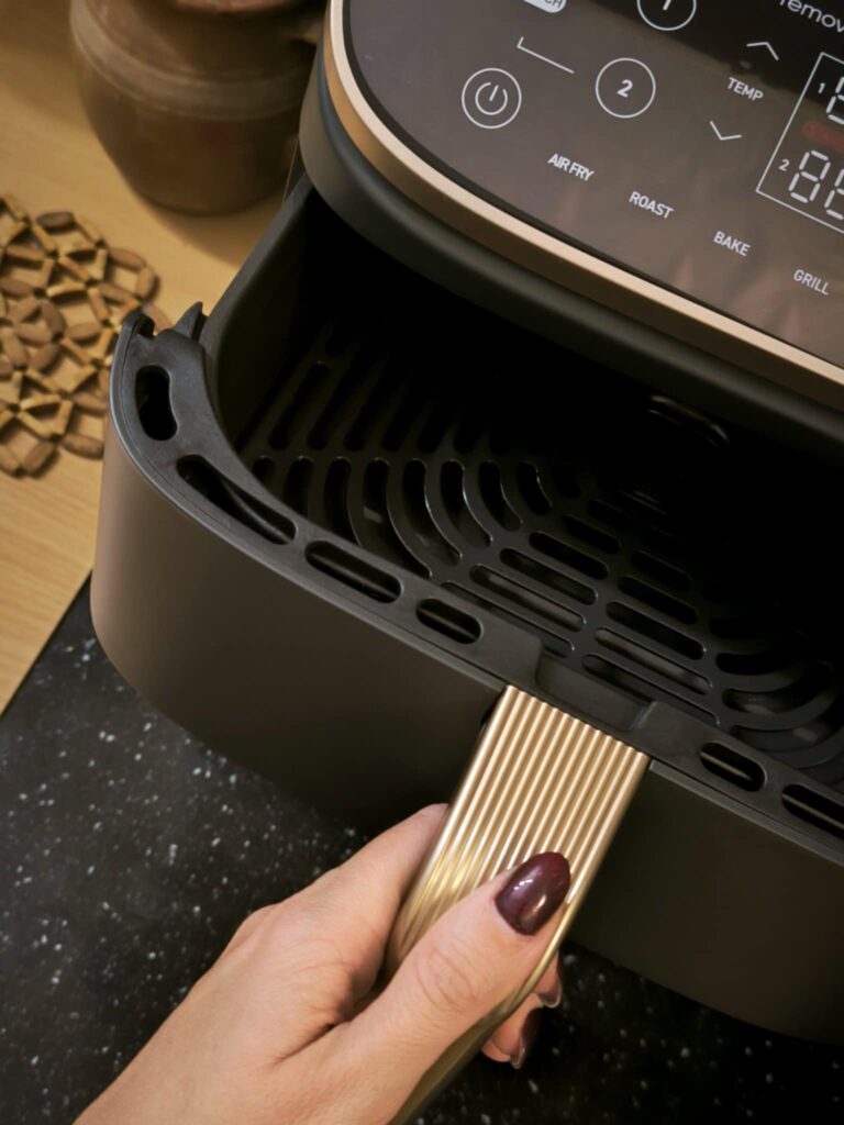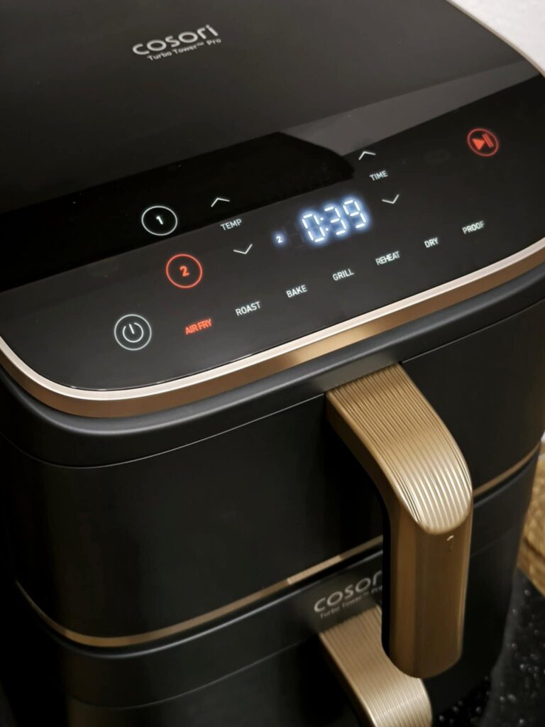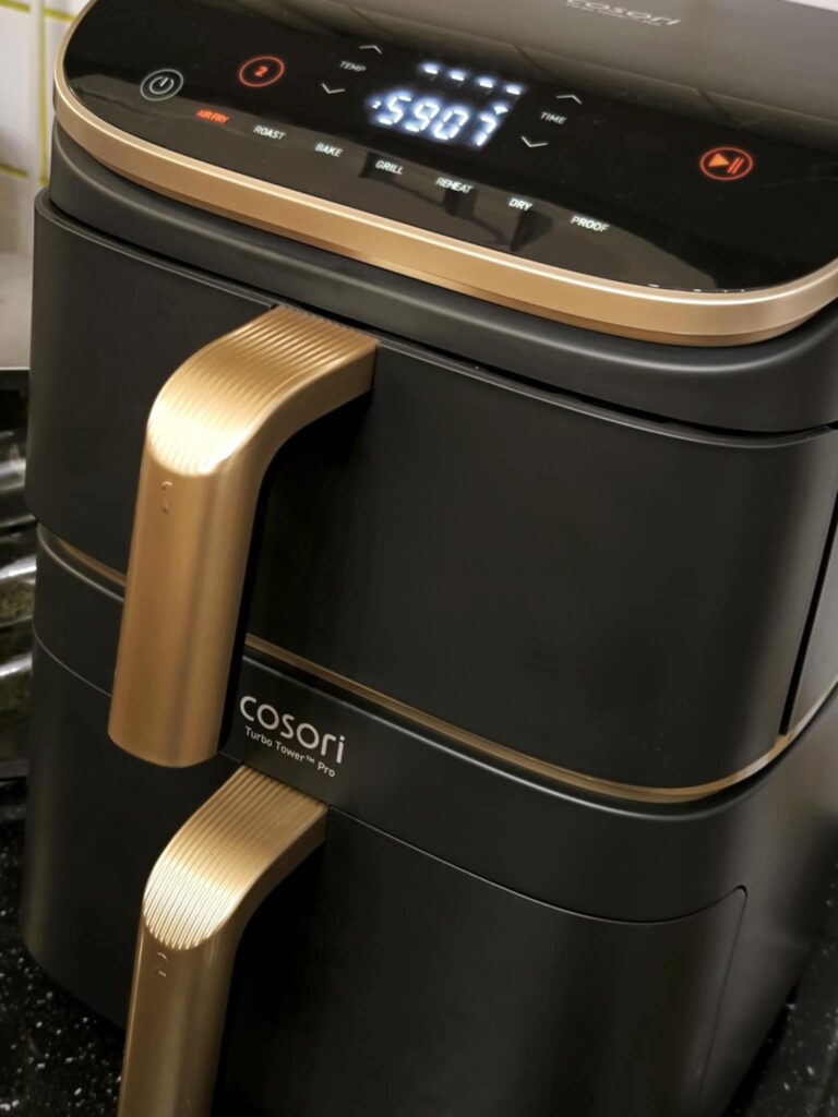 Szerelem első látásra | Bár háztartási gépet inkább funkció, mint küllem alapján választunk, a COSORI újdonsága rögtön elvarázsolt engem: már az anyaghasználatáról is a magas minőség árulkodik, a fekete – szürke – bronz színvilág elegáns megjelenést biztosít minden konyhában. Nem hivalkodó, mégis magára vonzza a tekintetet. Működése csendes, a hét funkció közül mindegyik praktikus – olvasd végig bejegyzésem, melyet az elmúlt másfél hónap tapasztalatai ihlettek!